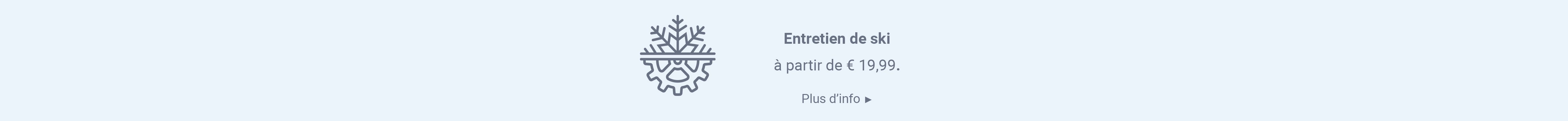 Descendez les pistes en toute sécurité : profitez maintenant d’un entretien avancé à petit prix. Déposez-le avant le 17/01/2021 pour en bénéficier.