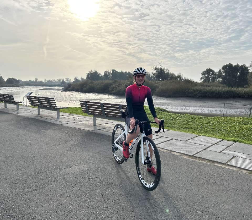 « Besoin d’une motivation supplémentaire ? Faites du vélo avec des amis ! Le groupe d’amis avec lequel je fais du vélo depuis des années est entièrement composé d’hommes – je suis donc la seule femme. Nous sommes généralement 8 à 10 personnes. Le rythme est assez soutenu, mais nous sommes en phase. C’est tellement satisfaisant lorsque je suis en pleine forme et que je peux les suivre ou les dépasser dans une côte ! »