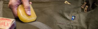 Vous partez vers une destination pluvieuse ? Appliquez une fine couche de cire Greenland – un mélange de cire d’abeille et de paraffine – pour rendre votre pantalon, veste ou sac à dos de randonnée en tissu G-1000 (à nouveau) résistant à la pluie et au vent et encore plus durable. La règle est simple : plus vous mettez de cire, moins le tissu laisse passer la pluie et le vent et inversement.