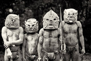 Impressionnant et même un peu effrayant. Faites connaissance avec les « mud men », à savoir la tribu Asaro qui, tels des esprits, surgissent de la jungle épaisse des Highlands. Selon la légende, cette tribu, vaincue par l’ennemi, avait trouvé refuge non loin de la rivière Asaro. Au crépuscule, ses membres rejoignaient leur territoire en suivant les rives boueuses de la rivière, prétendant ainsi être des esprits mystérieux. Leurs masques étaient réalisés à partir d’argile de la rivière, pour un effet encore plus impressionnant. Un ballet qui a tellement effrayé leurs ennemis que la tribu Asaro fut sauvée.