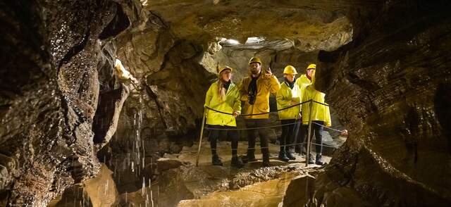 « La lumière dans la grotte est très bénéfique. Je travaille ici depuis cinquante ans et j’ai l’air d’en avoir quarante. » Nous nous retrouvons de nouveau sous terre, cette fois dans la grotte du Spannagel, et le guide Christoph s’amuse de sa énième dad joke. Vous savez, ce genre de blague qui fait uniquement rire votre paternel. L’enthousiasme débridé de Christoph est en revanche extrêmement contagieux. En tout cas, notre humeur est au beau fixe. Quelques instants plus tôt, on nous a donné des casques et des gilets jaunes (y a-t-il encore des voitures dans le coin à soulever et incendier ?) et nous avons descendu un escalier de pierre vers ce monde souterrain.